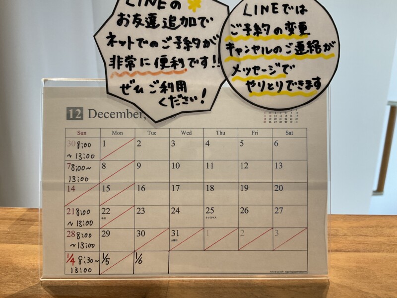 ●12月の日曜受付は7日・21日・28日